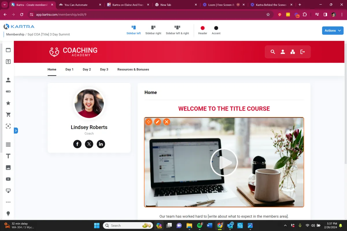 Client portal where they can access their courses, communities, memberships and create their own member profile