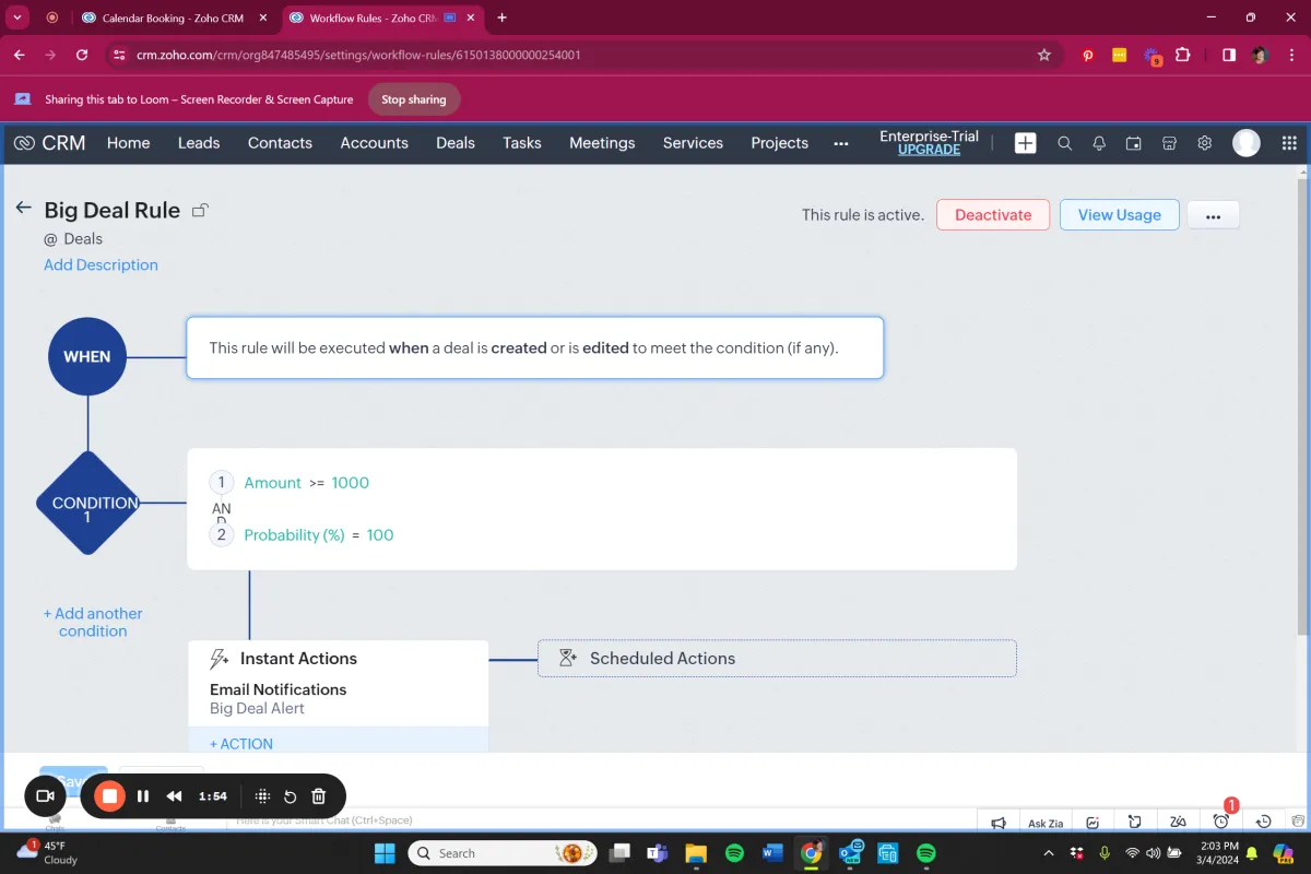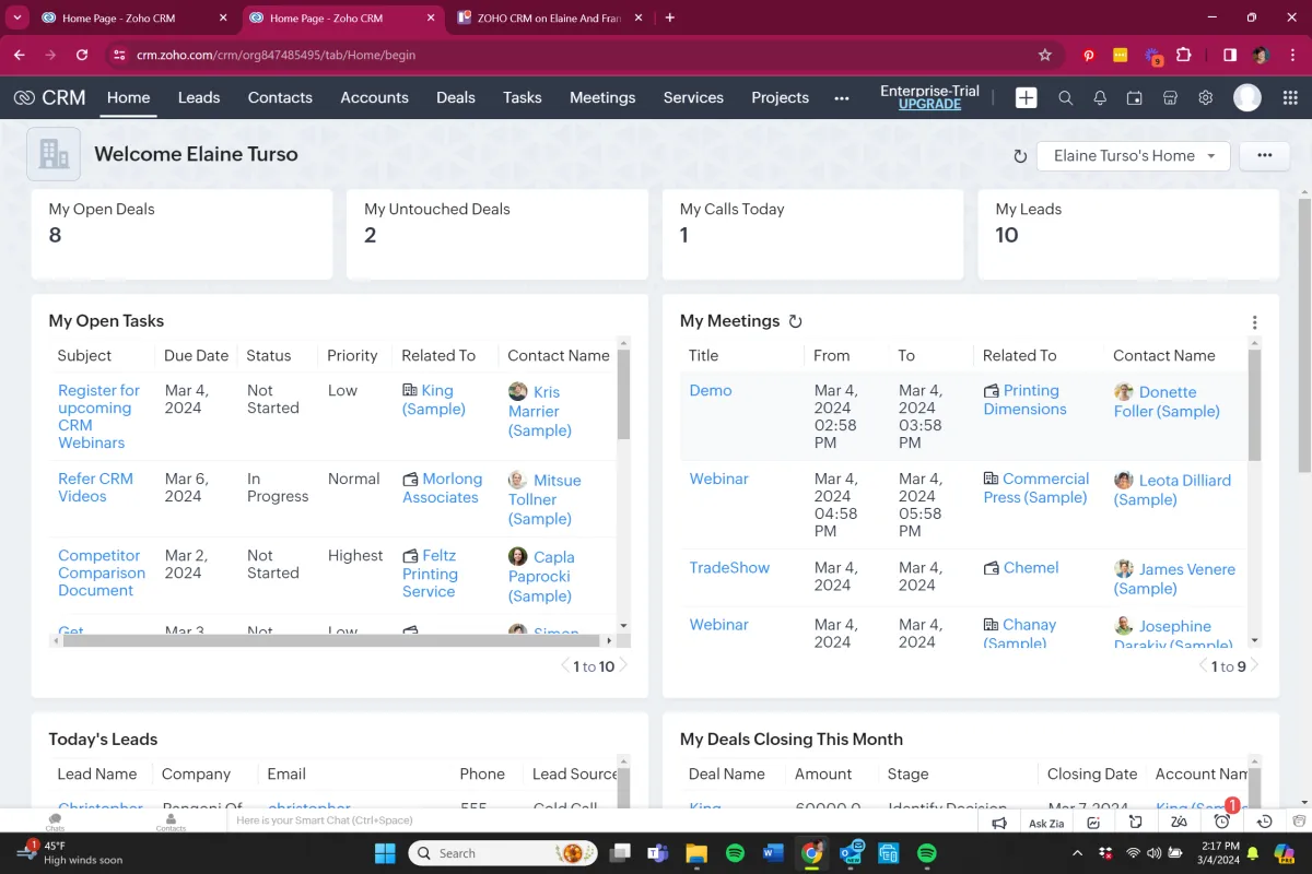 Zoho CRM stands as a comprehensive cloud-based solution for managing customer relationships, designed to meet the demands of mid-scale businesses up to large-scale enterprises. Its array of functionalities encompasses contact management, sales funnel supervision, pipeline oversight, workflow streamlining, AI-driven conversational assistance, task coordination, campaign management, sales projection analysis, customer support and service facilitation, inventory supervision, and robust reporting with analytics capabilities. Additionally, it seamlessly integrates with over 500 leading business applications, consolidating operations into a unified business ecosystem.